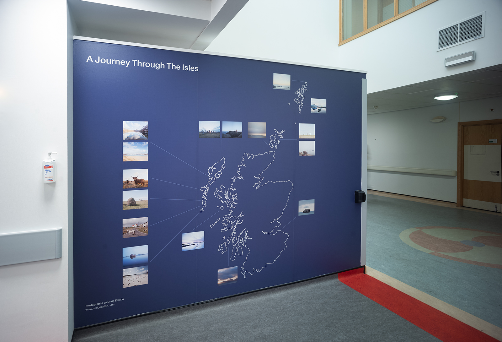 Craig Easton was commissioned by NHS Glasgow to create a body of artwork for the Beatson Radiology Unit, with the aim of inspiring and calming patients undergoing cancer care. Recognizing the power of visual art to provide comfort and distraction during times of anxiety, he sought to design an installation that would allow patients and visitors to feel a sense of escape and connection to the wider world outside the hospital environment.